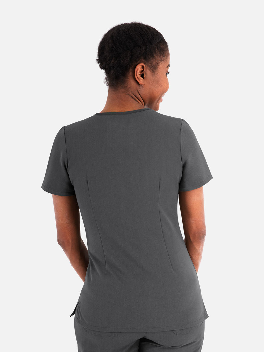 - Front princess seams and back dart for shaping